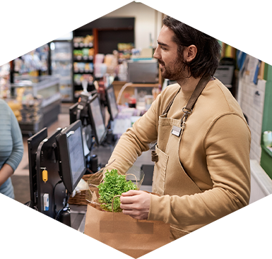 LOC Software is hardware-agnostic, which allows you to deploy sleek, small-footprint self-service kiosks. Our configurable grocery software also enables you to create a user-friendly interface that guides customers through the checkout process so they can easily complete transactions independently.
